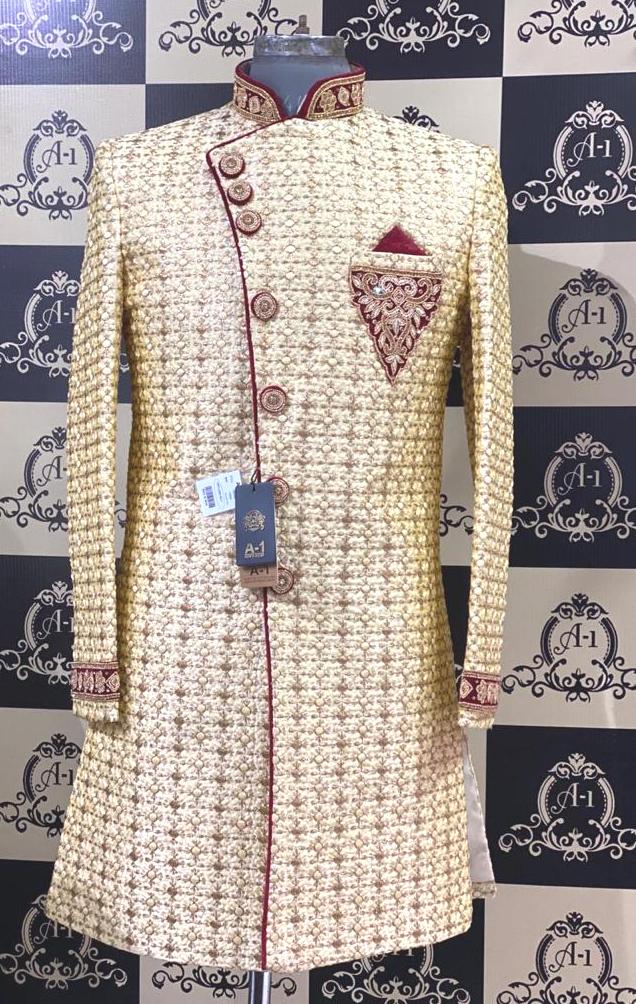 GOLDEN LIGHT MAROON SHERWANI