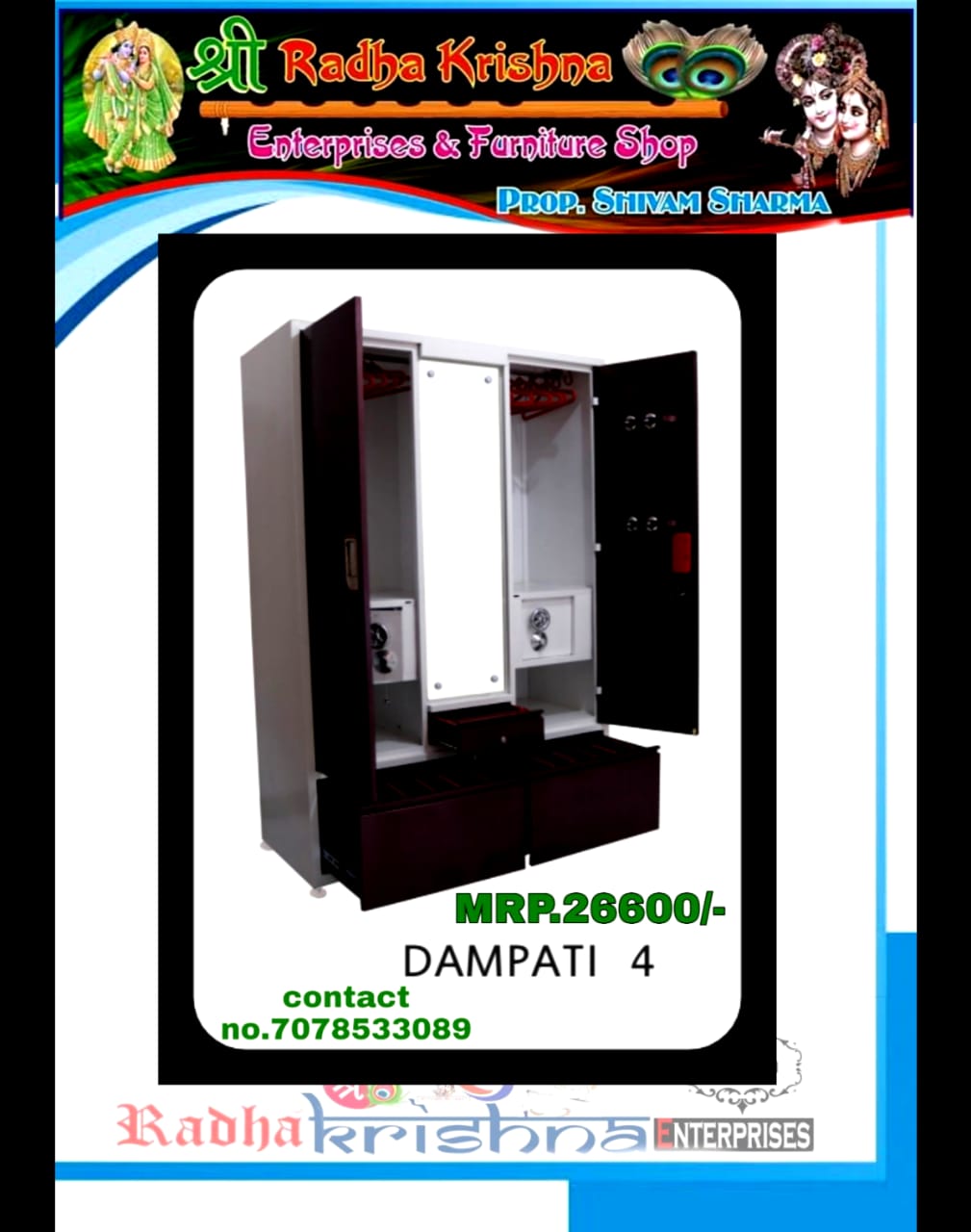 M - MAROON, W - WHITE, P - PRINCE GRAY, F - COFFEE, C - COKA, R - RED DESCRIPTION:DAMPATI 4 MODEL - 2 ALMIRAH, WITH 2 WAY LOCKER KEY FEATURES:- 10 Hangers with Hanging Rod